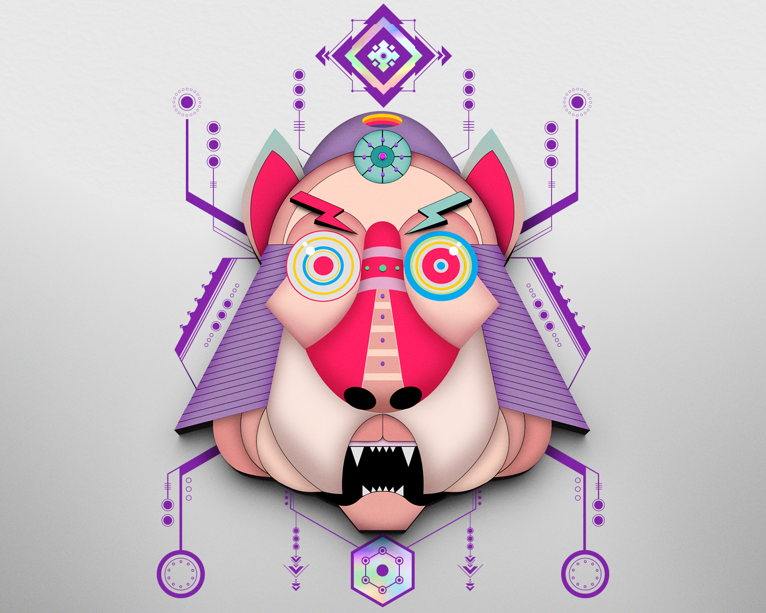 Pistol Star, who symbolizes Long Life & Prosperity, is an ancient creature form a hyper-giant star approximately 25,000 light years from Earth. These mighty electro-jaguar is part of the “Cosmic Beasts” and a member of “The New Alliance”, a social movement that helps promote empathy, love, and happiness in the world of humankind. His wearable smart shades scan people for viruses, which often lead to depression or anxiety. Pistol Star’s anti-virus scanner is designed in a way that, when you look in his shades, immediately a tunnel encapsulates you and slowly takes you to other dimensions, full of true colors and psychedelic shapes. More often you go to happy places, but all depends on where you currently are in your mental state. Be aware!